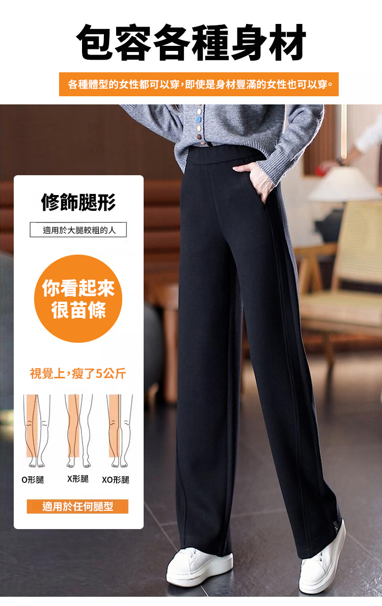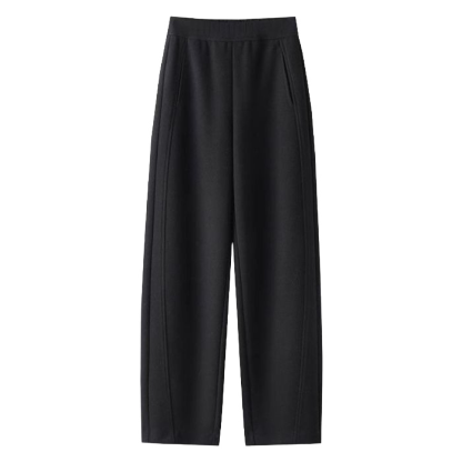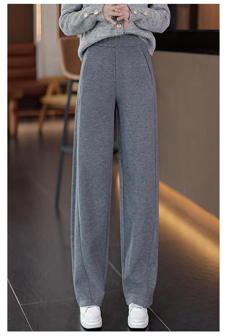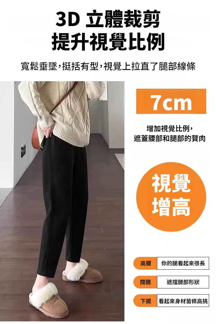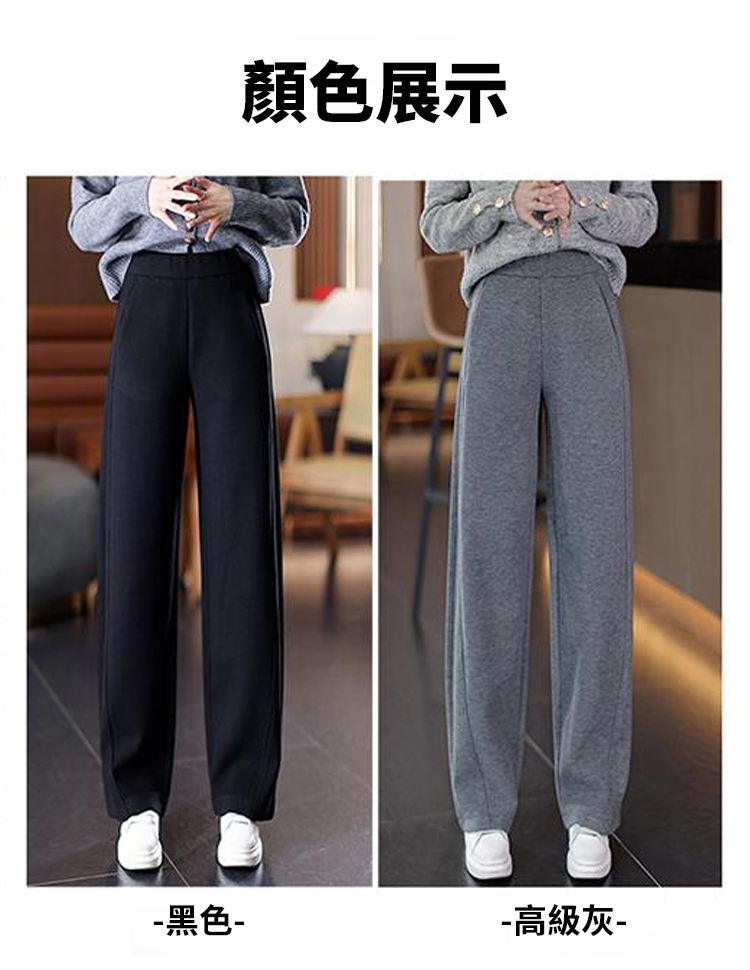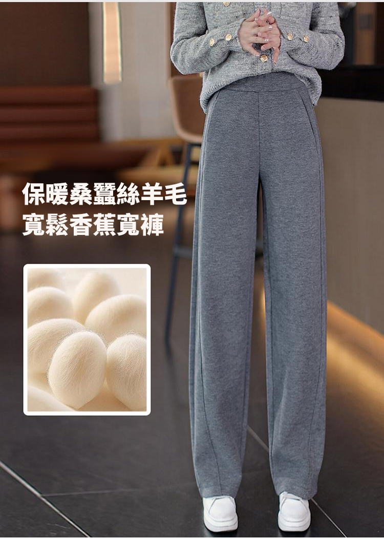 秋冬高腰寬鬆毛呢加絨彎刀褲