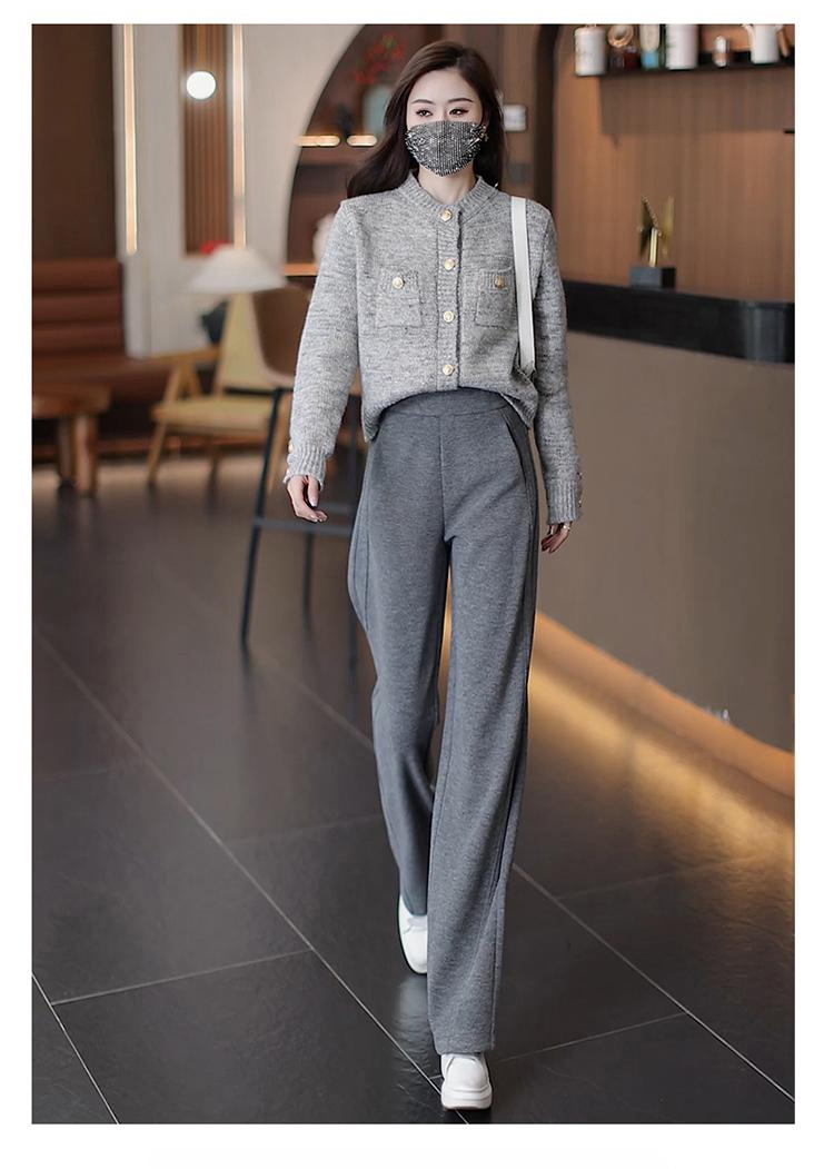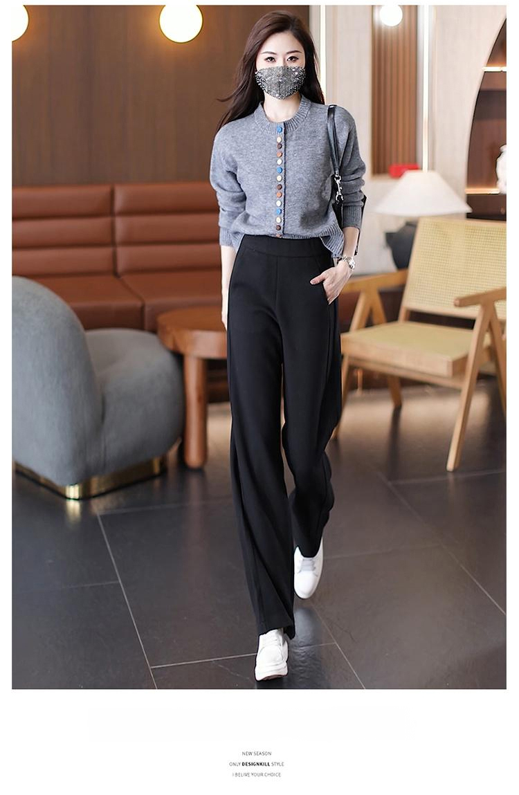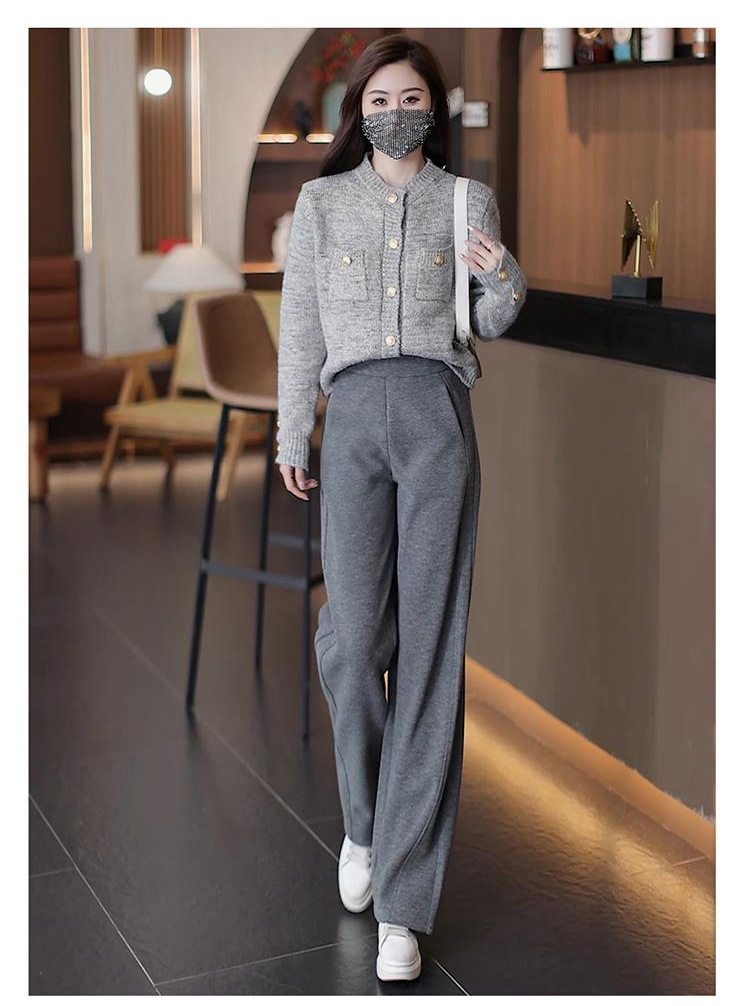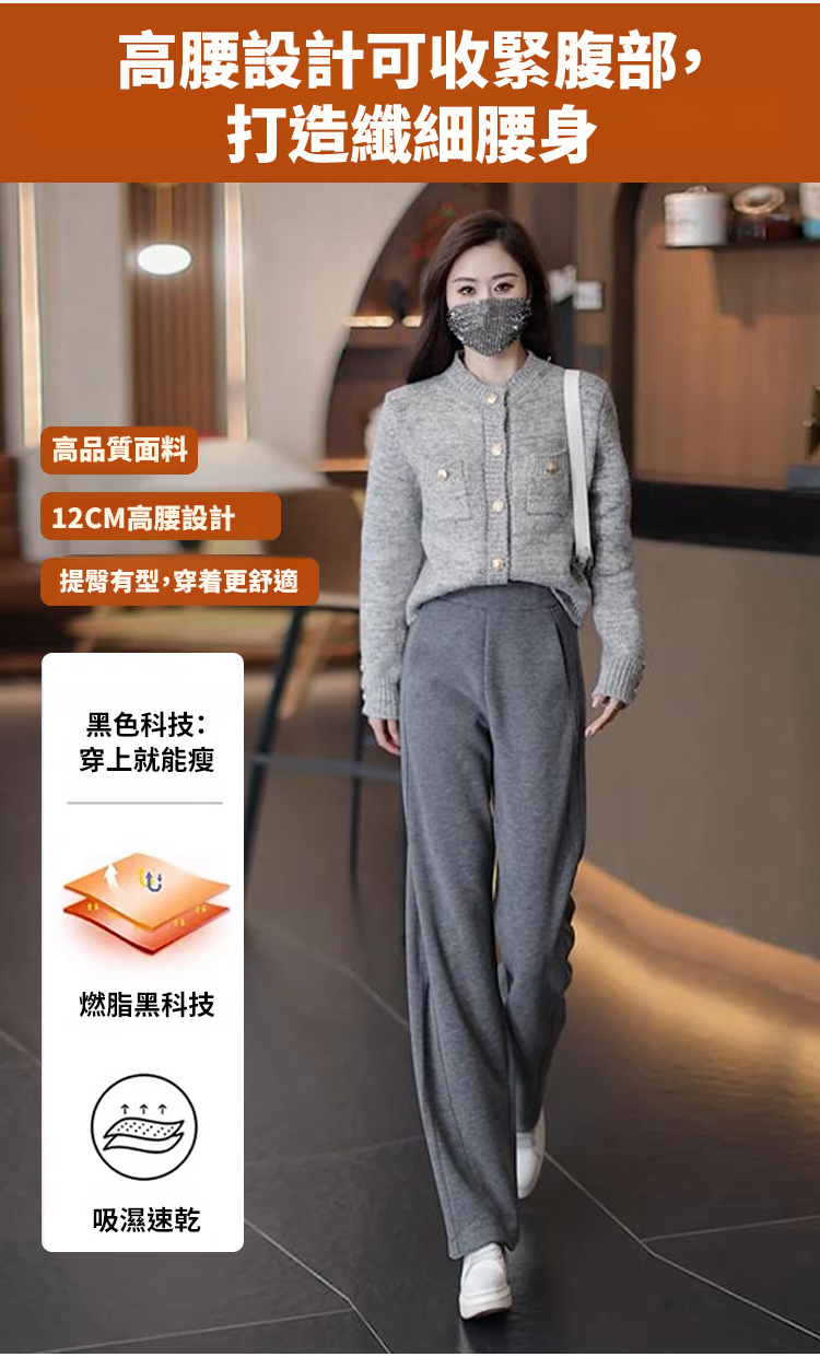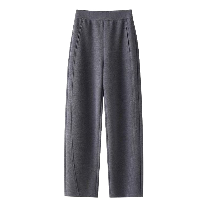 秋冬高腰寬鬆毛呢加絨彎刀褲