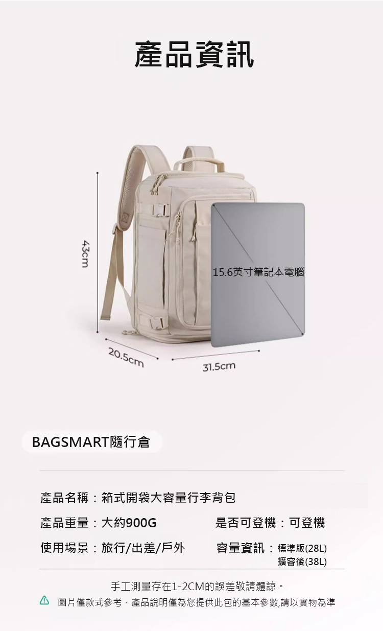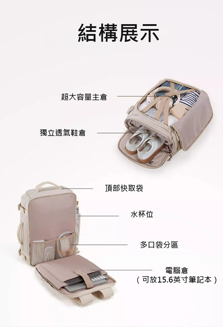【裝下整個世界】箱式開袋大容量行李背包